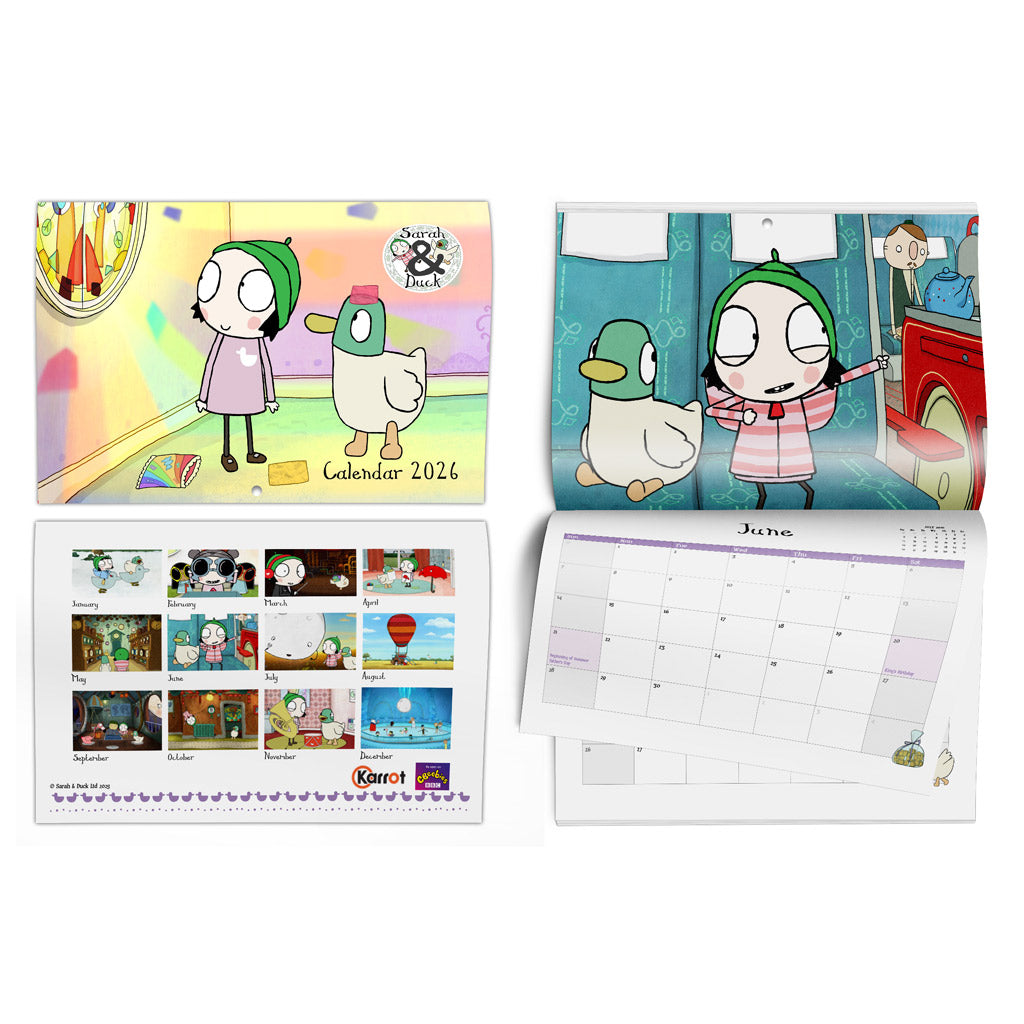 Delight in the charming world of Sarah & Duck throughout 2026 with our exclusive calendar, meticulously crafted for fans of all ages. Each month unveils a new, vibrant illustration featuring Sarah, Duck, and their delightful companions, bringing joy and imagination to your daily routine.